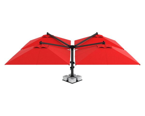 With its double-headed design and single rear-mounted base, the center of the two umbrellas can be fully...