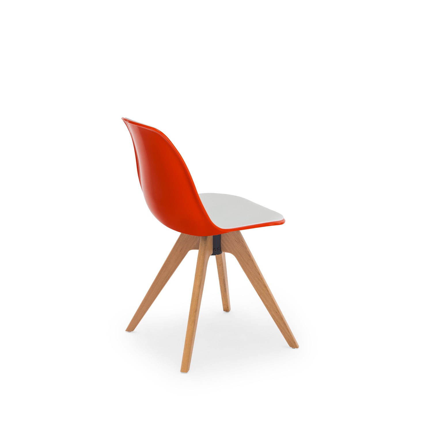 Two-way elegance meets wooden legs in Eos chair. The Eos chair, which has a dual-colored seating area where you can see the colorful reflections of the pop art style, now offers a much more intimate look with its crossed wooden legs. Its colorful design and easy wipeability make it a preferred choice in every environment, from school canteens to kitchens where food is cooked frequently. The Catas certified seating area, made of recyclable plastic, contributes to both the consumer and the world.